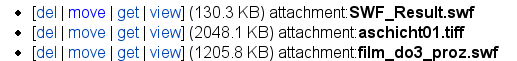 <<AttachList(nomdepage)>> donne la liste des pièces-jointes de la page indiquée.