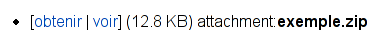 La macro <<AttachList>> affiche la liste des pièces jointes d'une page :